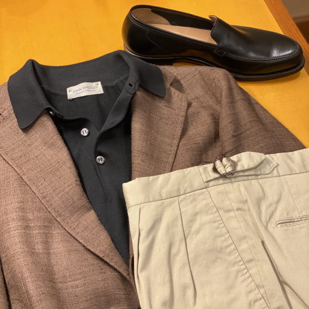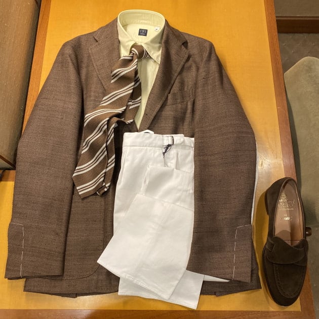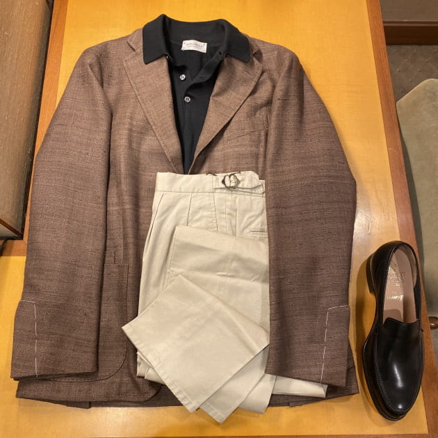 おすすめのジャケット。<Drake’s>のアイテムは、ほどよいミックス感が非常におすすめですよ!
