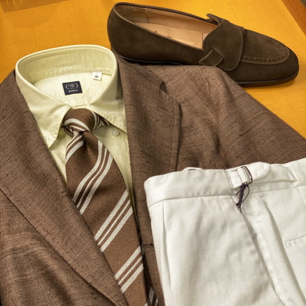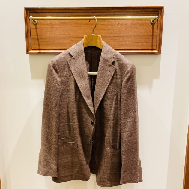 こちらは、シルク100%の珍しい生地。フワッとした軽い質感に、独特のネップがこなれた印象です。