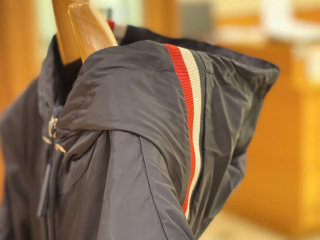 フードにトリコロールのラインが入っています。さりげなく主張するデザインが大人な雰囲気。