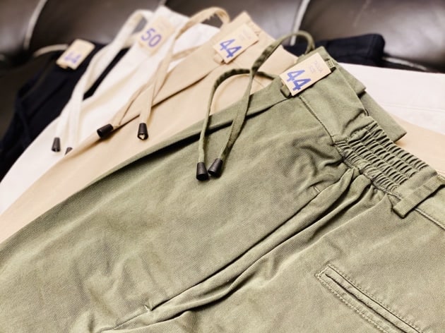 ワンプリーツのややゆとりのある腰まわりに短めの丈感、ドローコード。リラックスした大人の雰囲気を演出します。