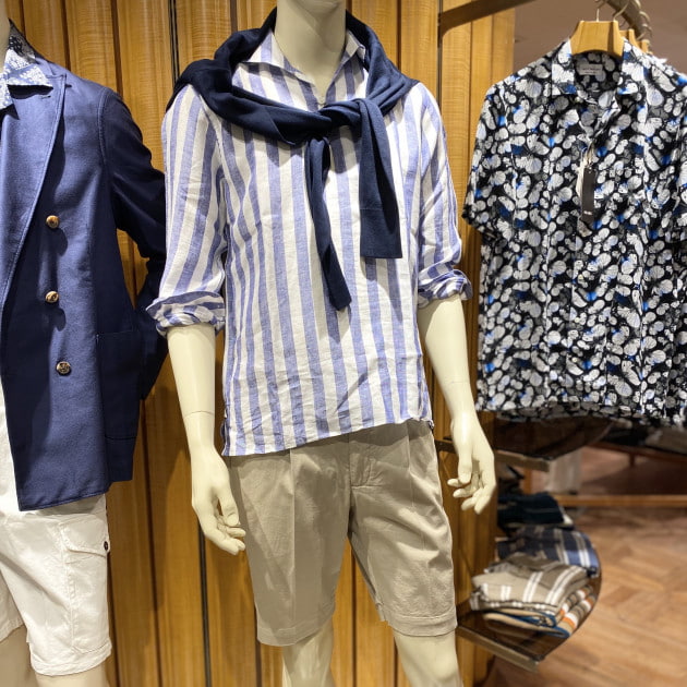 膝やや上の丈感がコンパクトで軽快なルックス。長袖のシャツなどとは相性抜群です。