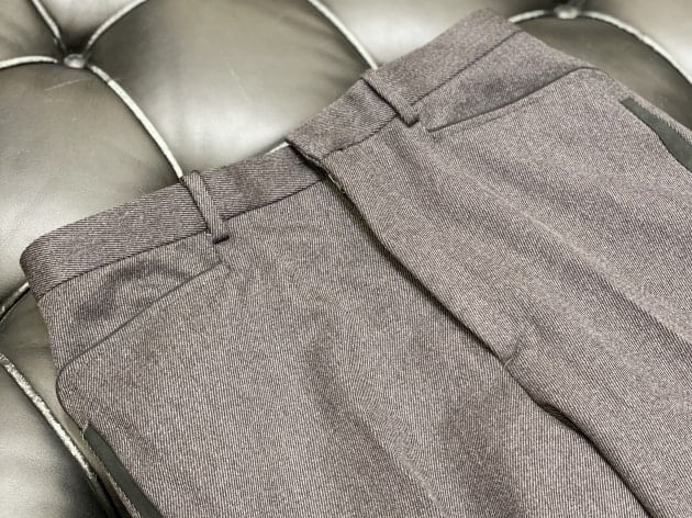 キャバルリーツイル生地のノープリーツのスラックスタイプ。