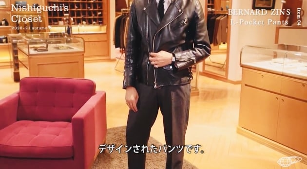 <BEAMS F>ディレクター、西口は動画でライダースにタイドアップスタイルに合わせていましたね。