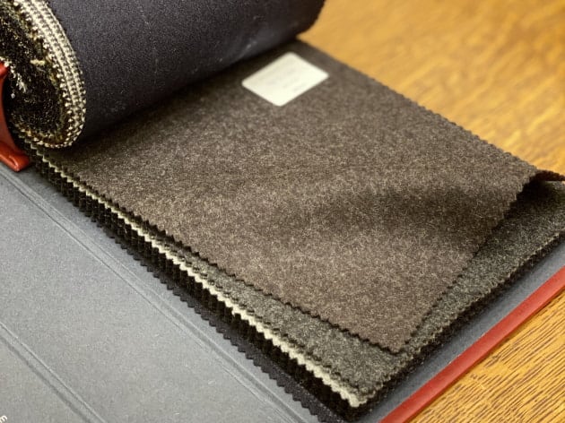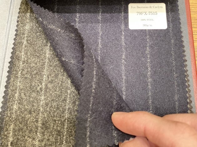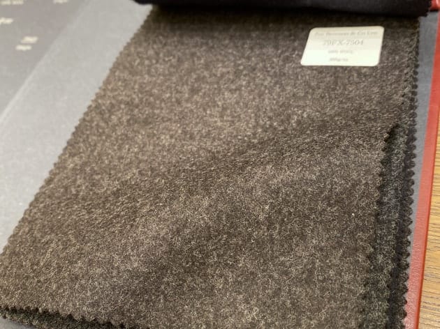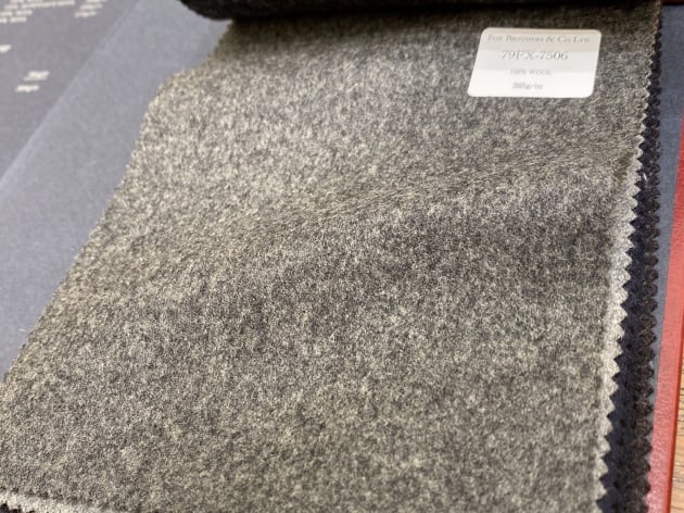 ウール100%、目付385gの生地は重すぎず、軽すぎの扱いやすい質感です。フランネルならではの暖かみも良い雰囲気。