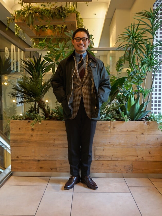 やはり彼もツイードジャケットにシャンブレーシャツでラギットな合わせ。