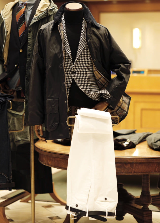 チラッと見える裏地のチェックも着こなしのアクセントに。