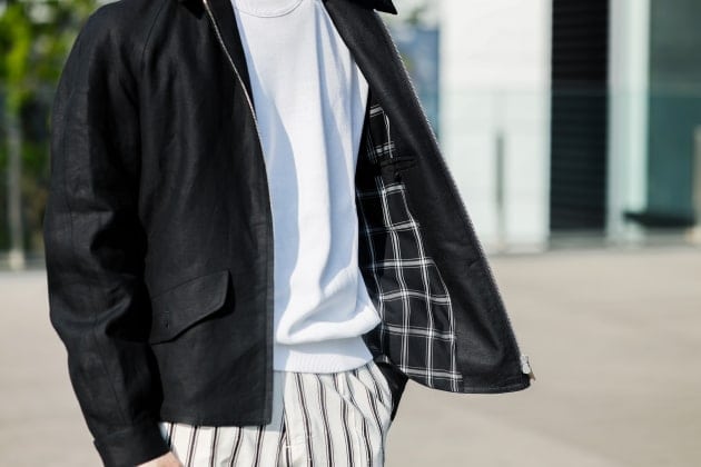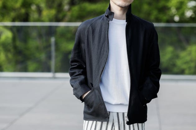 おすすめのブルゾン。間違いないモデルにブリティッシュな素材を載せたこちらは、ジェントルマンのワードローブに加えたい一着です。ぜひチェックしてみてくださいね!