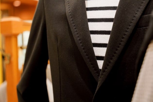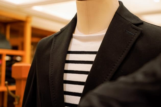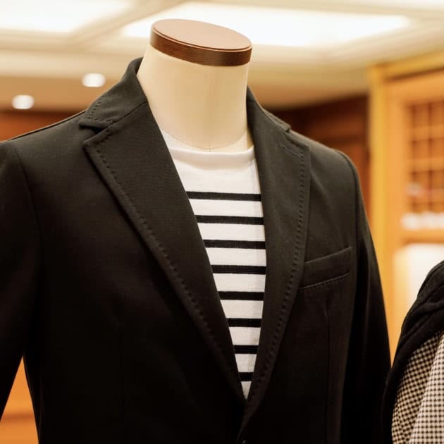 軽い質感が特徴的なジャケットは、ジャージー素材で柔らかなルックスがポイント。内側に入ったラペルのステッチもカジュアルな印象です。