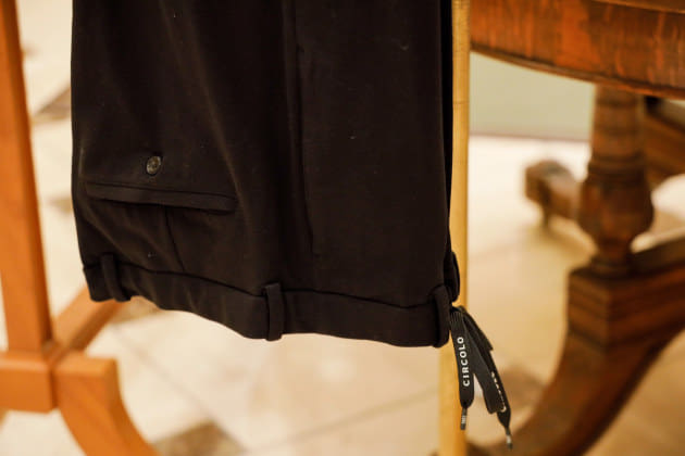 パンツはセットアップで同素材のドローコードパンツ。ベルトループ付きですが、カジュアルな装いの際はベルトは無しでも全く問題はありません。
