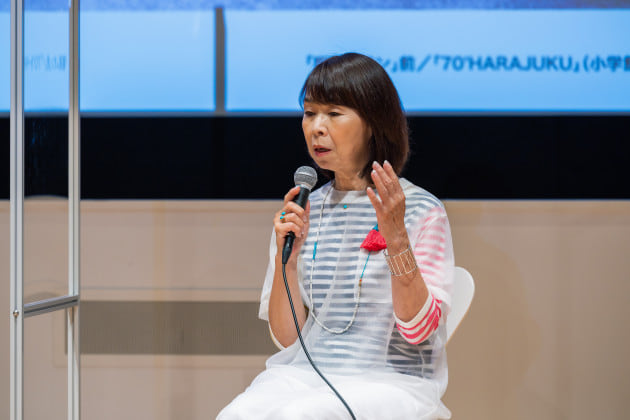 スタイリスト中村のん氏。70年代から原宿を拠点に多岐にわたって活躍されており、写真集『70's HARAJUKU』を監修。今回のトークイベントにも多くの写真を提供してくださいました。