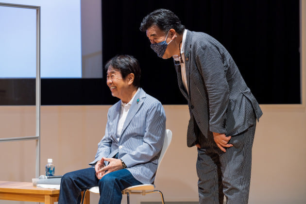 イベント前にはこんなシーンも。弊社取締役副社長の遠藤が駆けつけます。開演前の緊張感とは思えないほどの満面の笑みです。