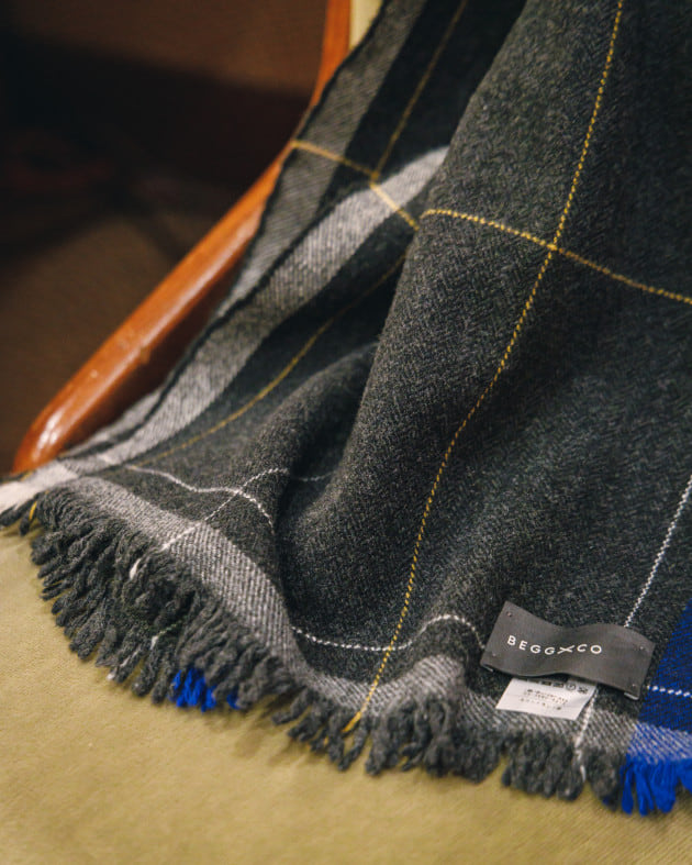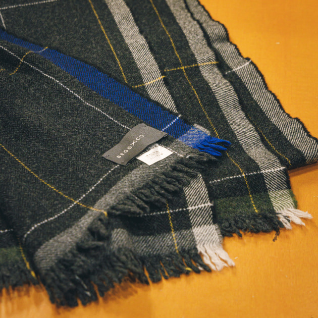 スコットランドの老舗ストールメーカー<Begg × Co>。使用する素材は天然繊維のみ。最高の素材と熟練の職人による、こだわりのものづくりで常にハイクオリティなアイテムを生み出しています。