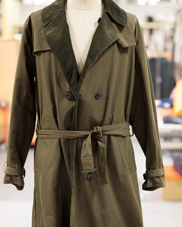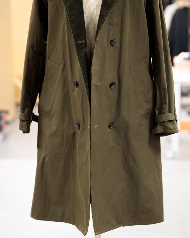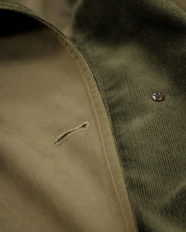ゆとりのあるボディに長めに取られた着丈。非常に雰囲気あります。切り替えられたコーデュロイの襟も男らしいルックス。