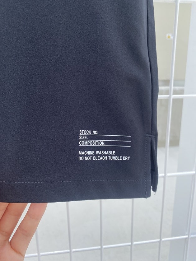 裾部分にはミリタリーウエアのスペックタグをモチーフにしたプリント入り。