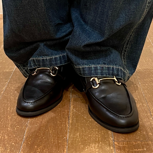 ローファー特有の着脱のしやすさと、程よいソールの厚みで快適な履き心地。