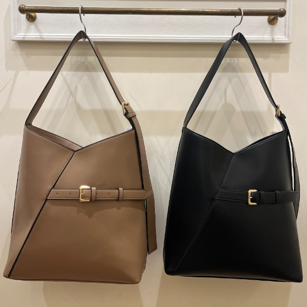 シンプルながらも遊び心のある切替デザインで、持つだけでコーデのアクセントに。