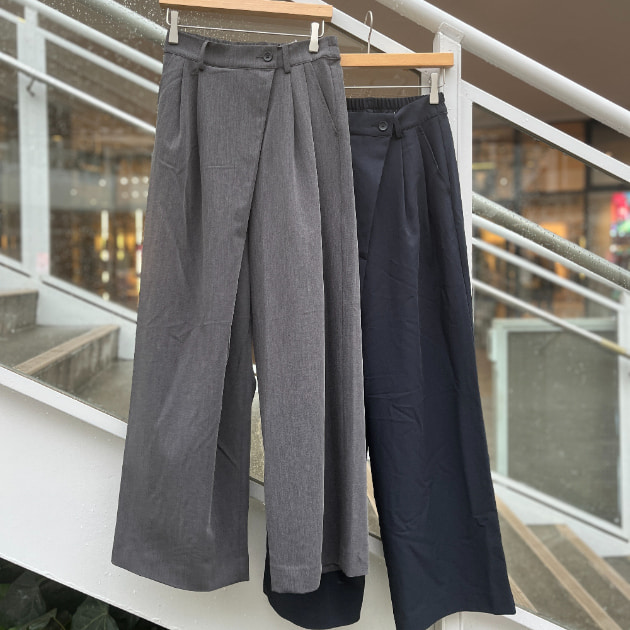 フロントのラップ風デザインとタックの立体感で