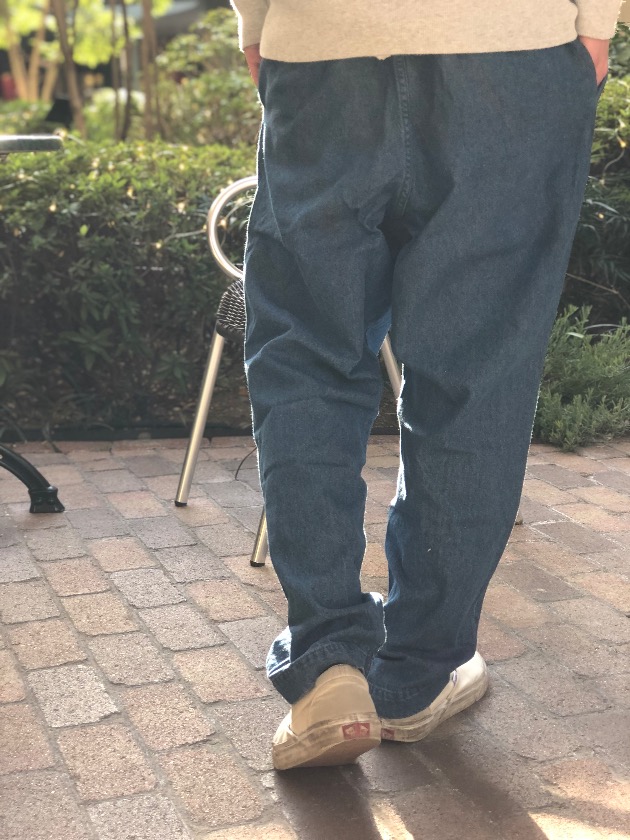 程よくゆとりのあるシルエットですが足周りはスッキリ履いて頂けます。