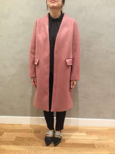 先程とは変わり、首元がスッキリとしたノーカラーです。