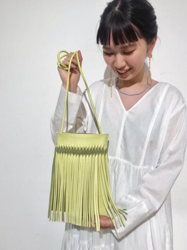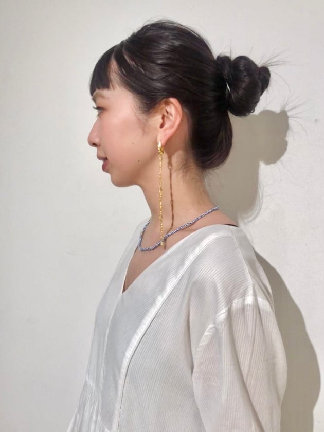 ビーズ系のネックレスを合わせてより清涼感を出しても素敵ですね。
