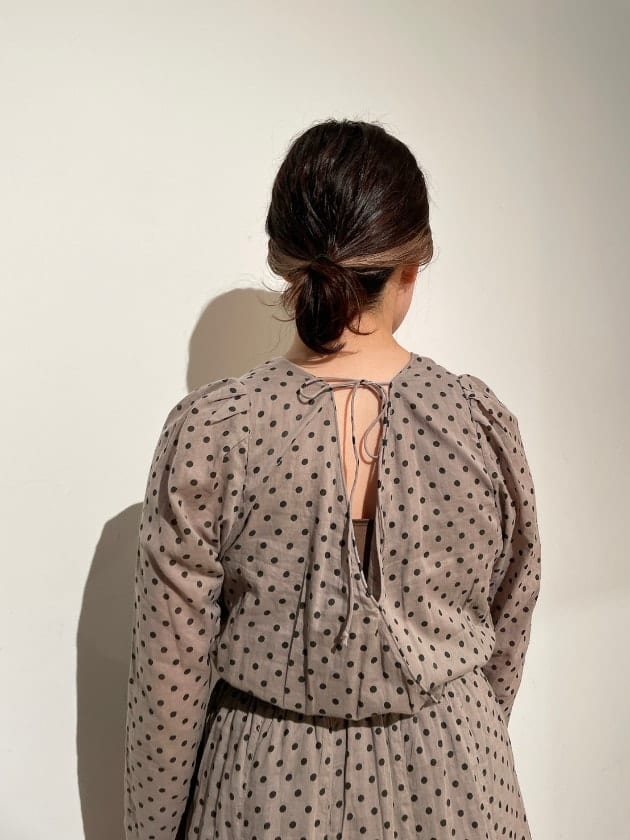 フィット&フレアなバランスが女性らしいドットのワンピースは、淡い色合いと小さめのドットで大人の女性らしさを感じさせます!