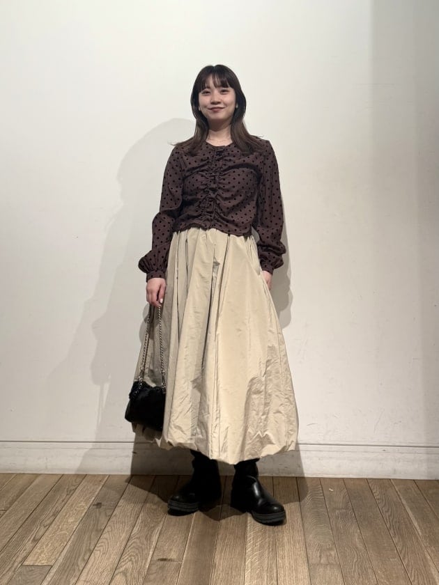 トレンドのドット柄と、前後くしゅっと立体感のあるデザインは、シンプルなスタイルにも映えますっ⚪︎⚫︎⚪︎⚫︎
