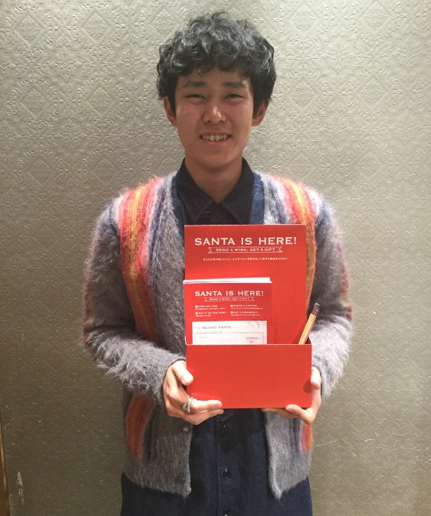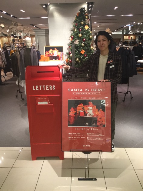 Beams Holiday Campaign 工藤 孝太郎 2016.12.04 12月1日から始まっておりますクリスマスキャンペーン。店内も一気にクリスマス仕様に!内容といたしましてオフィシャルサイトまたは全国のビームス店舗に置いてあるこちらの応募用紙に1番欲しい商品の番号を記入してあとは、ご自身の住所などをご記入いただき店頭にあるこのポストに投函するとその商品が届くかも、、、、、、2016年の運試しにいかがでしょうか?お店にはクリスマスギフトにもってこいの商品を取り揃えております。それでは、皆様の御来店スタッフ一同お待ちしております。