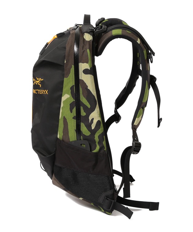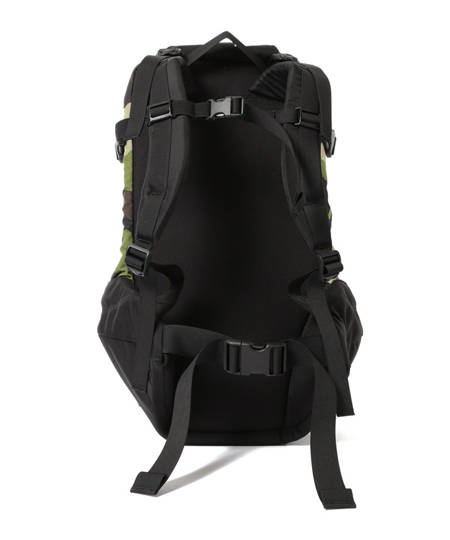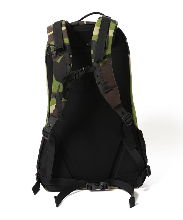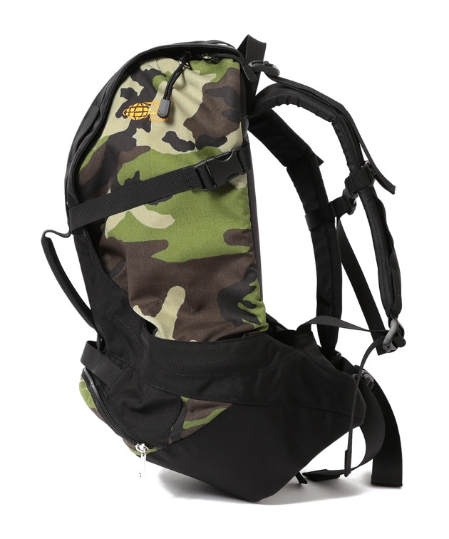 大人気の別注ですが、今回は満を辞しての迷彩柄で別注になりました!止水ジップや背中のフィット感が増すサーモフォームバックパネル、小物へのアクセス性が高いフロントポケットなど機能面もバッチリ。バックパネルに別注の証である、ビームスのコーポレートマークが入ってます。