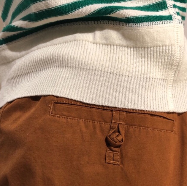 ズッシリとしたコットン生地と、伸縮ナイロンで出来ているので着心地抜群です。