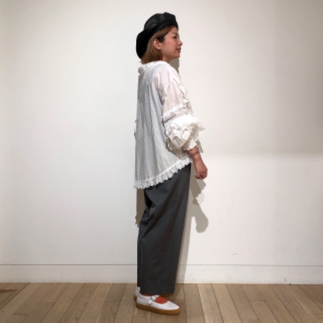 襟元、袖元、裾、フリルが繊細にあしらわれているので、レイヤードスタイルにも重宝しそうです。