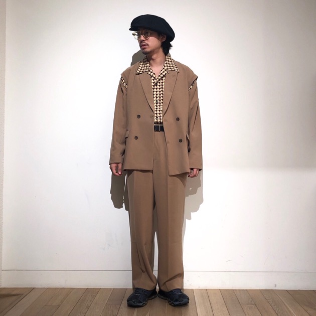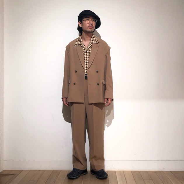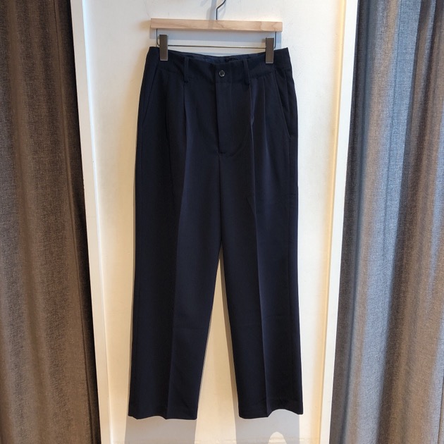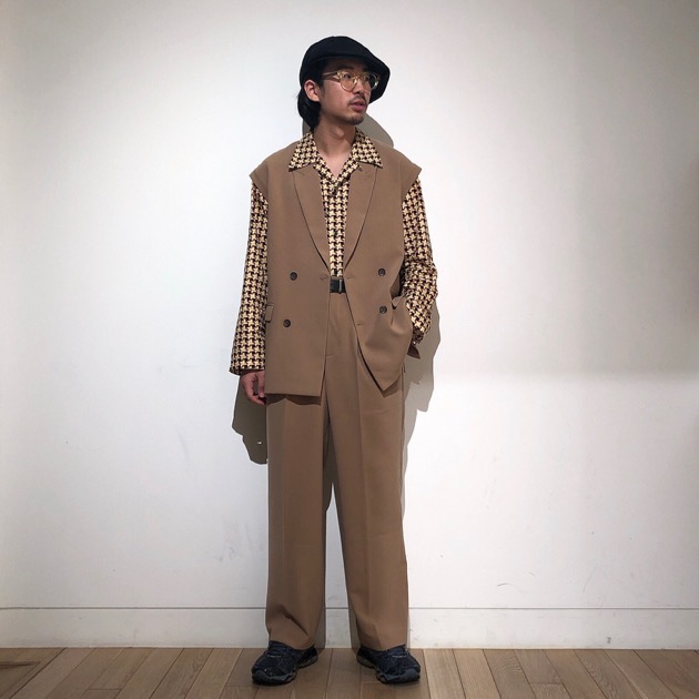 2プリーツのワイドシルエットでセットアップだけでなく、様々なアイテムとも相性良きです。
