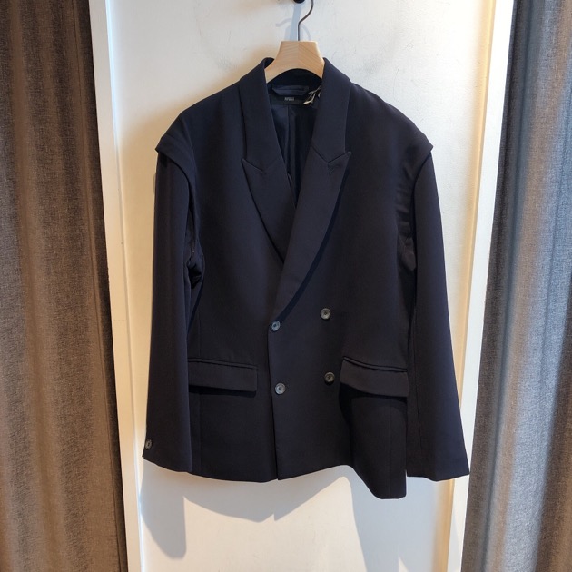 一見、シンプルなダブルブレストのジャケットですが、なんと