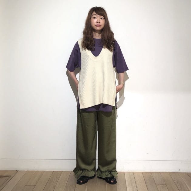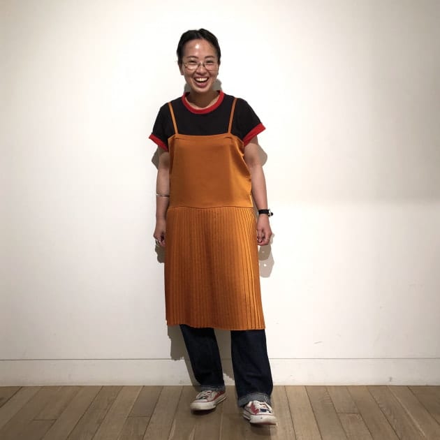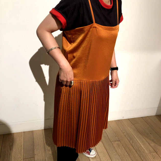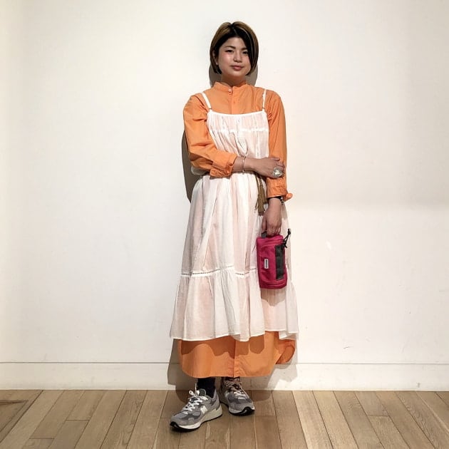 <Ray BEAMS>のスタッフ小林が着るオレンジの合わせ方も真似したい◎
