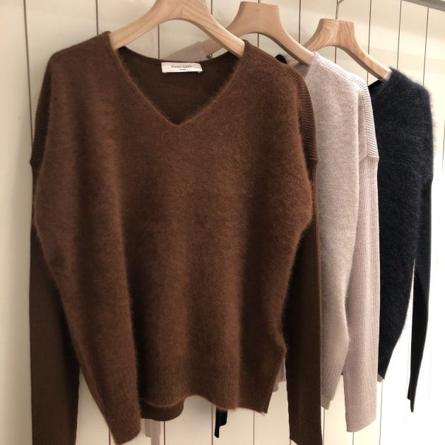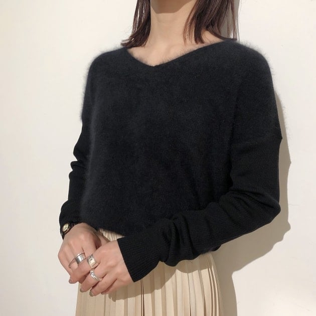 Demi-Luxe BEAMS / フロントフラッフィ Vネックニット