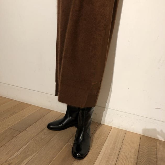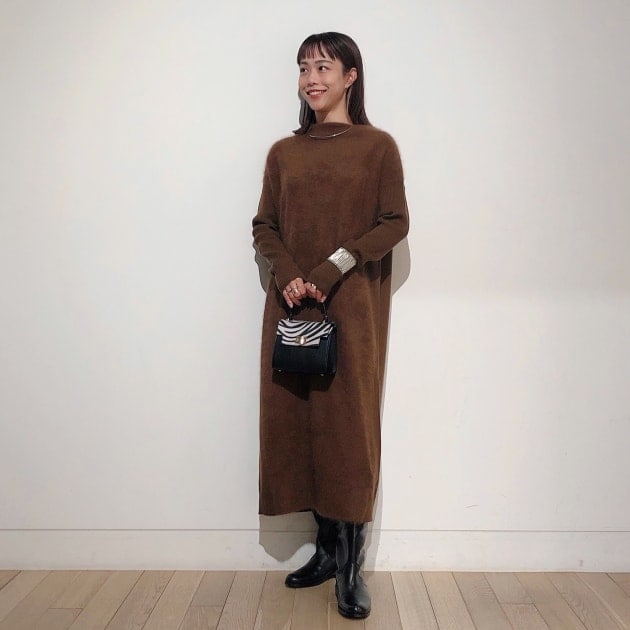 今年らしくロングブーツと合わせて一枚でさらっと。