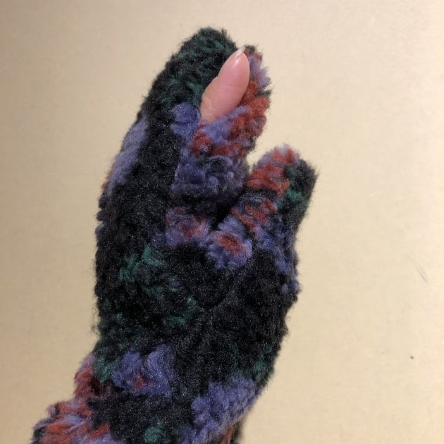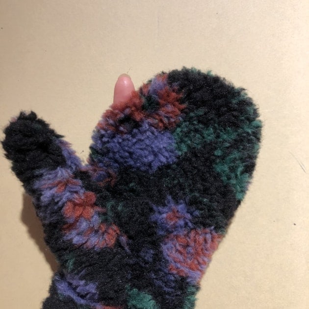 そしてこのミトン、指が出るようになってます^^スマホ、触れます!
