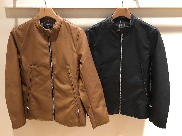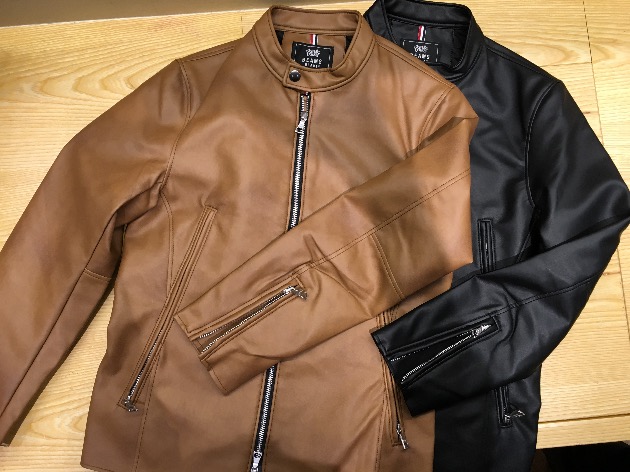 フェイクレザーで柔らかく、着心地も抜群です。カラーもライトブラウンとブラック、トレンド感のある2色です。