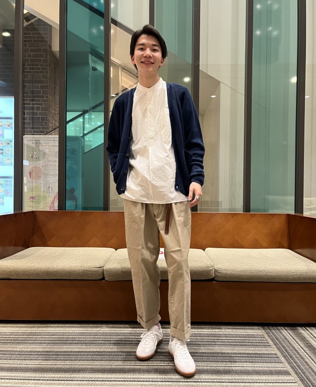 シンプルにシャツとカーディガンの合わせです。シルエットも相まってクリーンな印象になります!