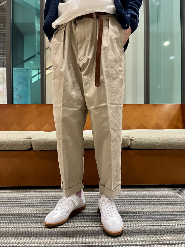 大人のチノパン。一見とても太いのに履いて驚き。美シルエットです。