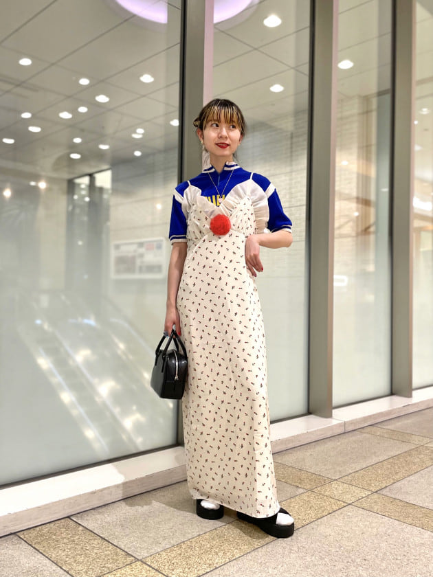 サンダルが見えにくいですが、ラブリーなワンピースと合わせてみました!