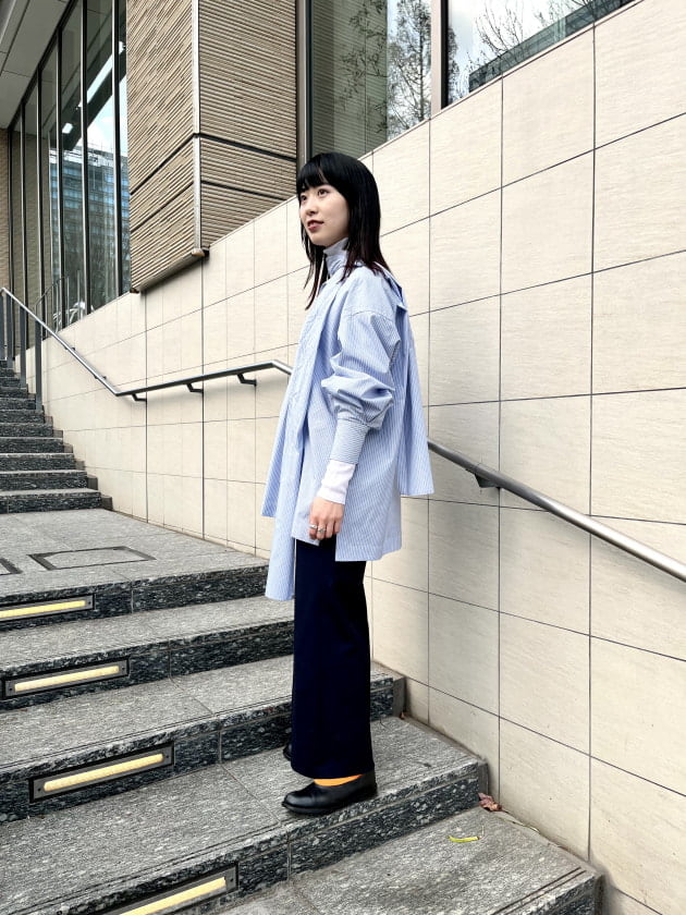 いろいろな着こなしを楽しめるので、かなりオススメのブラウスです。