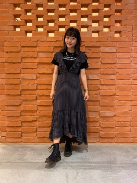 ワンピースに合わせてロゴをチラ見せしています。オールブラックでトーンを纏めていますが、ワンピースの素材感で夏らしさもありますね。流石です。