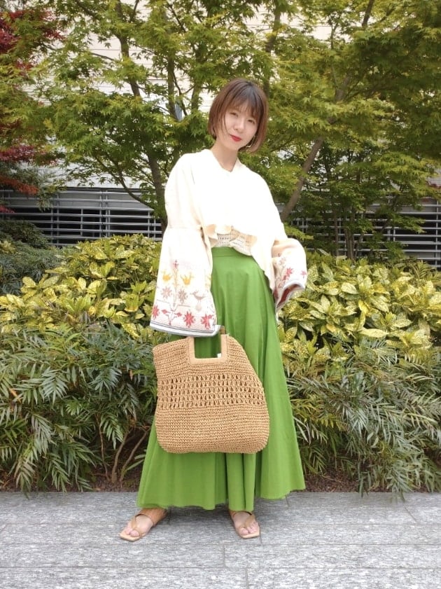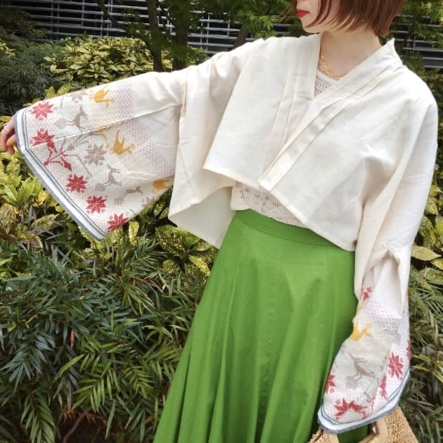 刺繍好きには、フレアスリーブとの組み合わせはたまりません♡
