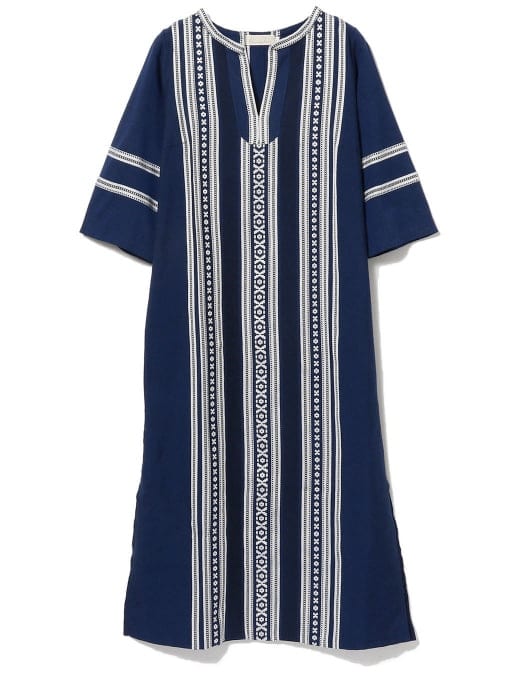 ①《締めつけのないゆったりシルエットが魅力のワンピース》