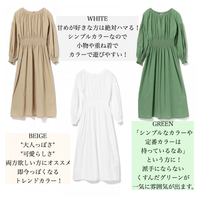 Ray BEAMS / ボリューム ギャザー ワンピース