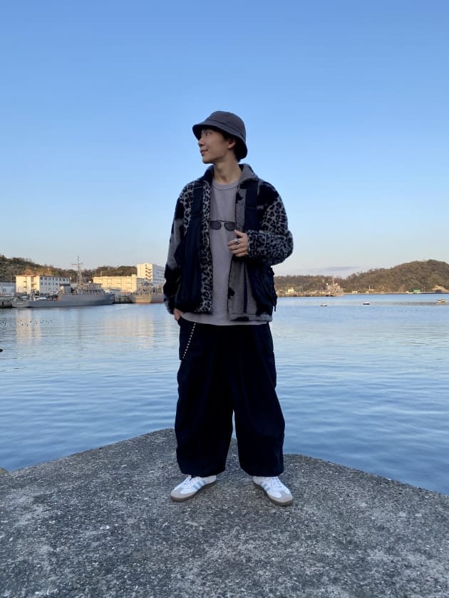 好きな服装は柄物のトップスに太めのパンツ。最近は柄のパンツも探しています。