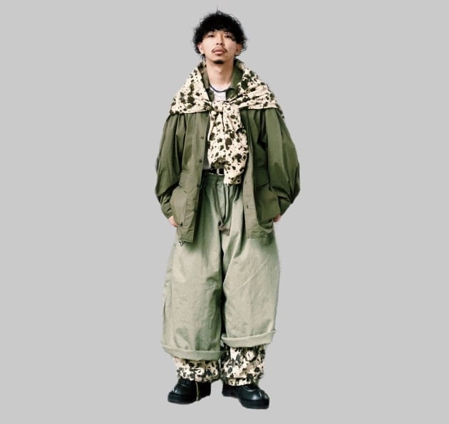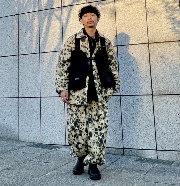 こちらもルーズに。ジャケットはLsize、パンツはMsizeで購入。