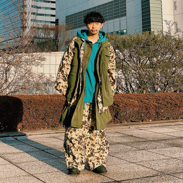 リップストップ生地のCPジャケットに、ツルタ的大定番のヒザデルパンツ。