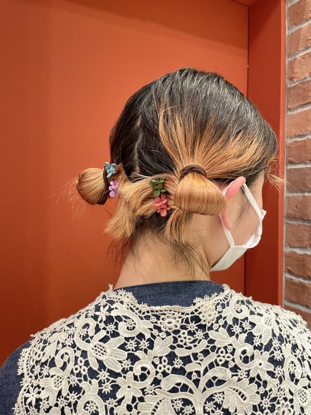 お団子ヘアにボリュームがプラスされて可愛い♡