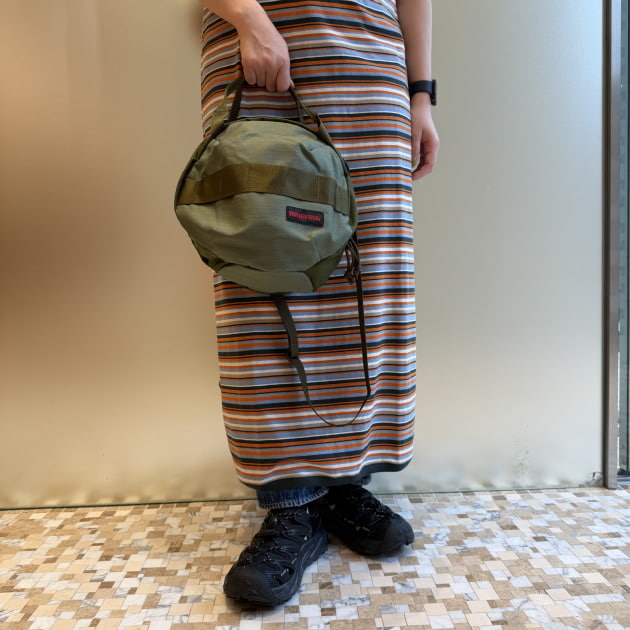 アメリカ海軍のパラシュートトラベリングキットバッグを元ネタに横長にシルエットで中身も見えやすいです◎